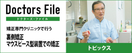 「舌側矯正」とも言われる「リンガルブラケット矯正」です。上下ともに歯の裏側に矯正装置を装着するので、見た目には矯正をしていることが全くわかりません。多くの人に会うようなお仕事をされている方に人気で